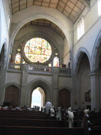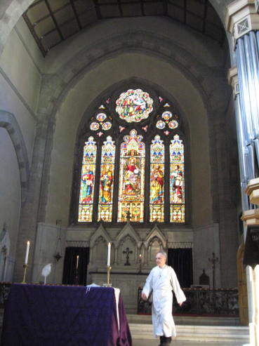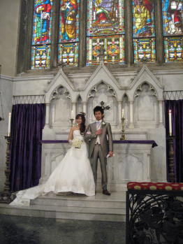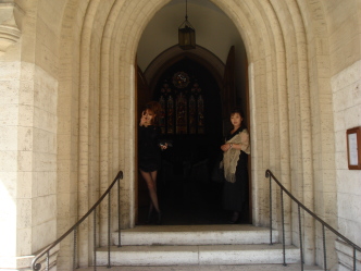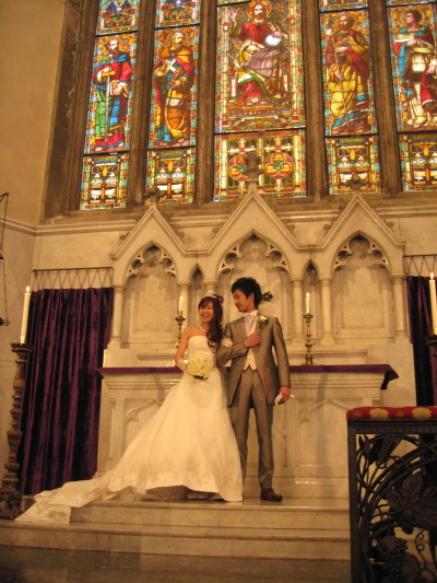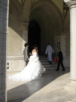 まだ 教会の門は閉まっていて・・・ 挙式前の神父さま^^