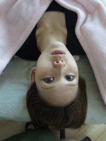 左の側頭筋をゆるめたら前頭骨(おでこ)が動いたので 慌てて写真を撮りました。