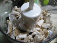 椎茸の石突きも、裂いて、細かく切ります。(これも私はフードプロセッサーです)
