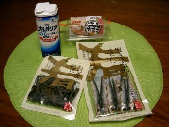 飲むヨーグルト&温泉卵&おしゃぶり昆布&丸干し