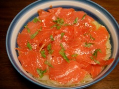 これが、マリネですよね。(↑は、サーモンマリネ。取り分ける前です)