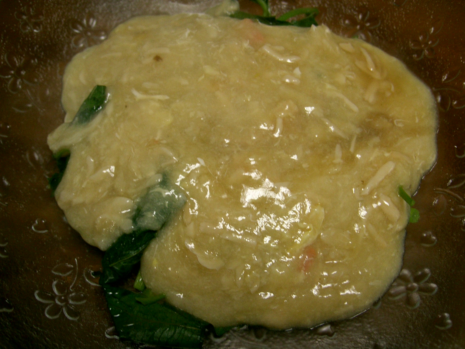 お皿に盛ったモロヘイヤに<あん>をかけ、できあがり〜^^