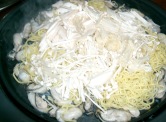 少しの間、蓋をして…麺がエキスを吸ったら、茸類を。