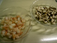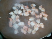 1.海のモノをテキトーに切り、白ワイン・塩でサッと炒める