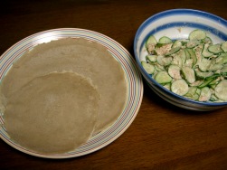 そこで、そば粉をクレープのように焼いて、何でも巻いて食べちゃいましょ^^
