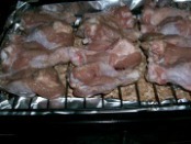 塩・コショー&ニンニクを揉みこんだお肉を網の上に置く