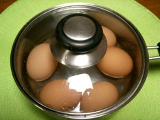 たっぷりのお湯で、卵が少なければ20分くらいでOKです