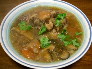 4.椎茸等、茸類を入れて圧力鍋で20分、ニンニク醤油で味付を整える