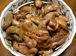 ・鍋に、茹でた肝を入れ、うなぎのタレで煮込む