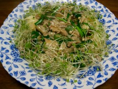 パスタの時は、かいわれ大根やスプラウトを散します。