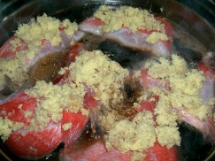 見易いように、金目鯛の上に生姜を置きました。